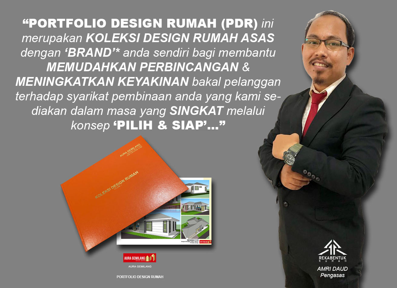 PORTFOLIO DESIGN RUMAH/PDR ini merupakan KATALOG DESIGN RUMAH yang kami sediakan menggunakan ratusan design rumah yang kami ada DALAM BENTUK PELAN LANTAI beserta ukuran dan LUKISAN 3D dengan memasukkan LOGO SYARIKAT anda pada setiap design agar dapat MEYAKINKAN bakal PELANGGAN dan MEMUDAHKAN PERBINCANGAN anda dengan bakal pelanggan tersebut.