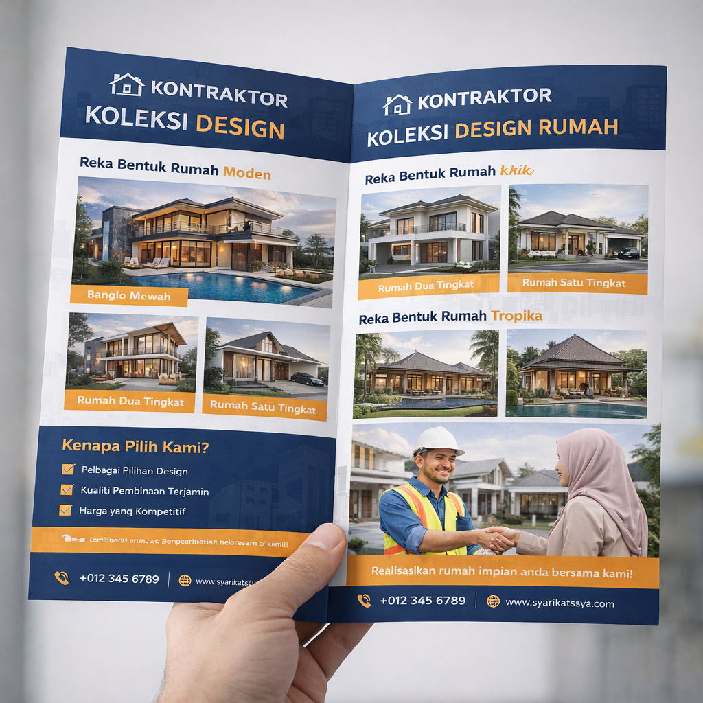 Kesilapan ini juga bakal menjerat anda kerana bakal pelanggan biasanya lebih yakin dengan kontraktor yang ada katalog design rumah dengan brand/logo anda sendiri.