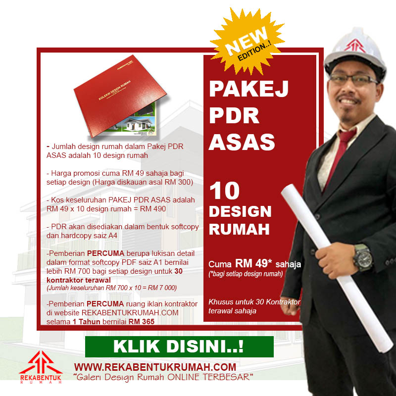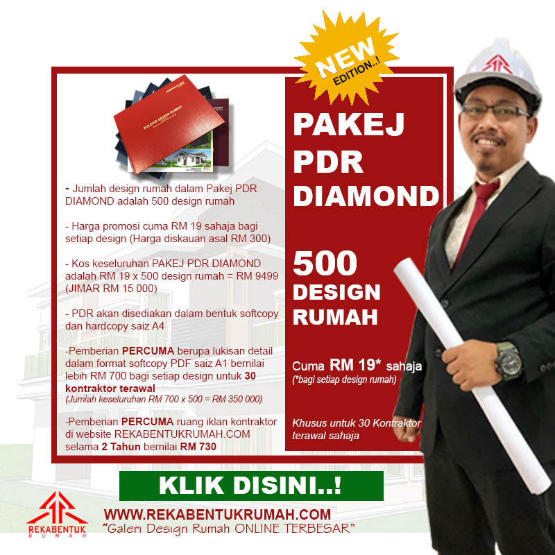 - Harga mampu milik untuk semua kontraktor yang serius dimana harga promosi yang ditawarkan cuma serendah RM 49 sehingga RM 19 sahaja bagi setiap design rumah bergantung kepada Pakej PDR yang dipilih.