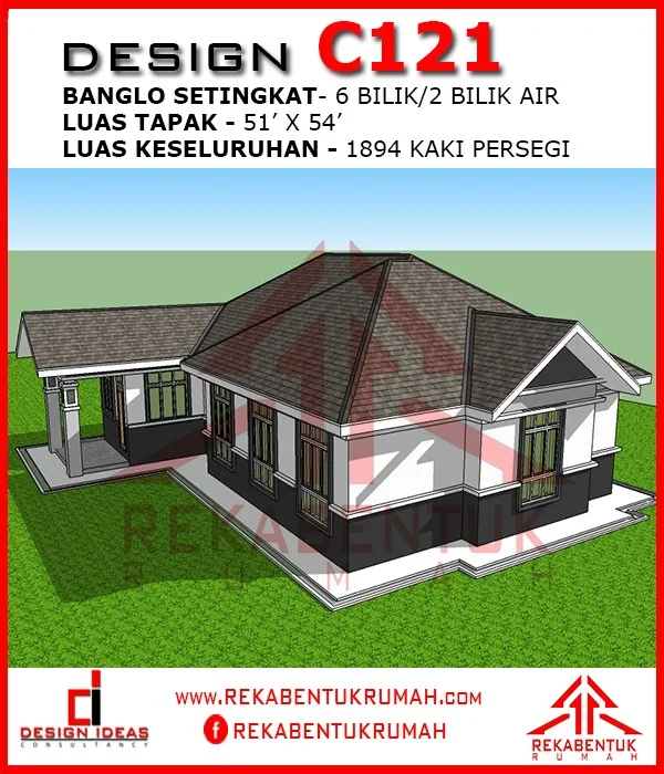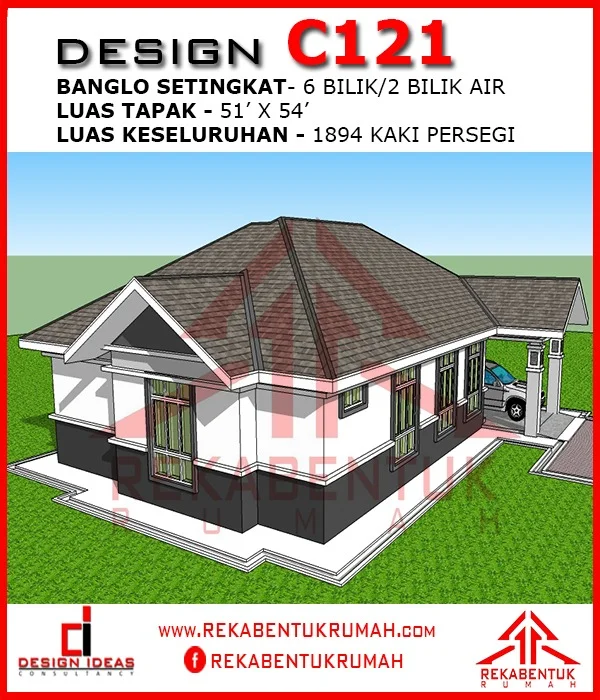 Untuk mendapatkan lukisan detail Design Rumah C121 ini beserta ukuran dan spesifikasi pembinaan, anda boleh membuat tempahan melalui link dibawah..